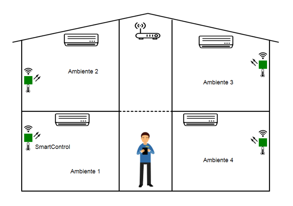Descrição: O projeto SmartControl consiste no desenvolvimento de um sistema com tecnologia IoT para controlar a partir de uma página Web os aparelhos condicionadores de ar. Com o SmartControl um funcionário poderá controlar através de um computador, tablet ou celular os aparelhos condicionadores de ar de todo o prédio, tendo ao seu dispor as funções de ligar/desligar e aumentar/diminuir a temperatura de cada aparelho além de monitorar em tempo real a temperatura do ambiente. Tal sistema de automação se faz bastante útil pois de maneira prática, rápida e não presencial fornecerá informações em tempo real da temperatura dos diferentes ambientes oferecendo a unidade melhor gestão da energia elétrica aliada a um sistema não invasivo com baixo custo de implementação.